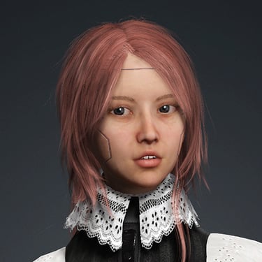 サクラと並ぶダークサイド・アンドロイドの毒舌担当。「めんどくさいことが大嫌い」と公言し、しばしば不機嫌になるが、その内面は精神年齢6歳に設定された子どものような存在。大人ぶる言動と感情の不安定さが、愛嬌とも危うさとも取れる魅力を放っている。(CV:花風さやか)